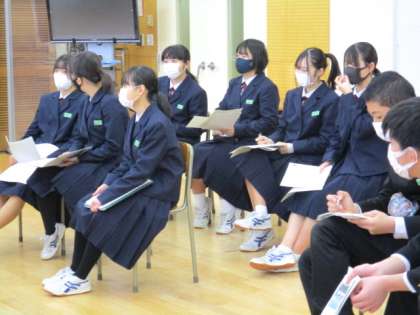 3年1限 音楽 公開日 2022/01/24 更新日 2022/01/24 日々の活動から 1月24日(月) 3年生の音楽の授業の様子です。 「自分のパートを最後まで正しい音程で歌えるようにする」という内容の授業でした。 卒業式の歌「証」 感動的な歌になることを期待しています。 残された音楽の授業も残り5回程度です。