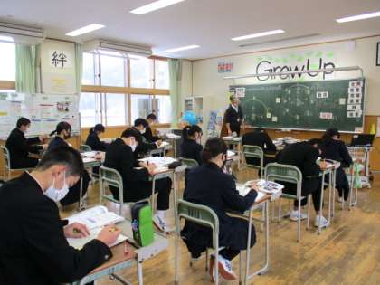 3年2限 理科 公開日 2022/01/24 更新日 2022/01/24 日々の活動から 1月24日(月) 3年生の理科の授業の様子です。 「月の満ち欠けについて考えよう」という内容の授業でした。 月はなぜ形を変えていくのか、とても興味深い様子で授業を受けていました。