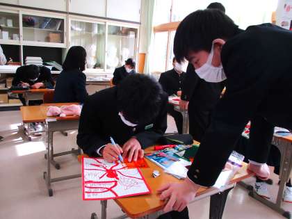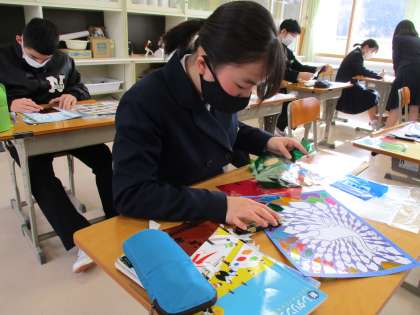 3年3限 美術 公開日 2022/01/25 更新日 2022/01/25 日々の活動から 1月25日(火) 3年生の美術の授業の様子です。 ステンドグラスの制作をしていました。 きれいですね。 卒業までに完成させましょう。