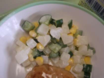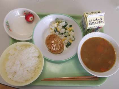 今日は「サイコロサラダ」に、小さな《ハート》型の〈大根〉や〈きゅうり〉が入っていました。