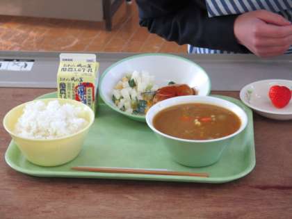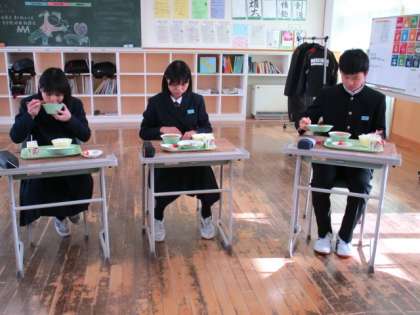 1月26日(水) 2年生の給食風景です。 2年生の給食は、多め盛りです。 決して大盛りではありません。