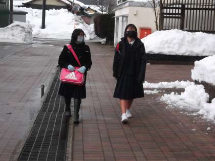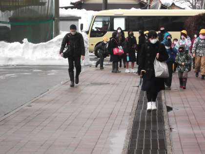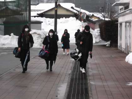 曇り空の下、寒さをさほど感じず、元気に登校してきました。