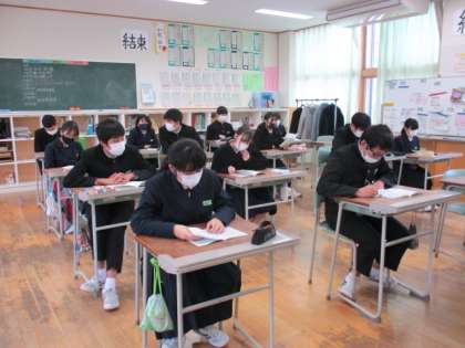 3年4限 「総合的な学習の時間(楡の木タイム)」 公開日 2022/01/28 更新日 2022/01/28 日々の活動から 1月28日(金) 3年生の「総合的な学習の時間(楡の木タイム)」の様子です。 来週行われる私立一般入試に向けて「受検のしおり」を作成し、読み合わせました。