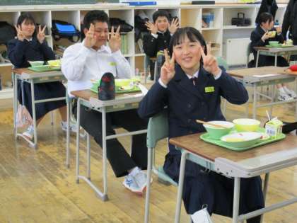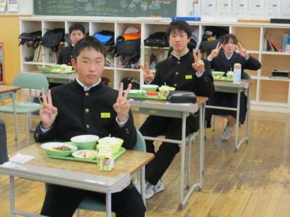 1月28日(金) 1年生の給食風景です。 今日も素敵な笑顔をいただきました。