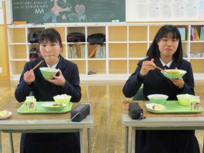 1月28日(金) 2年生の給食風景です。 午後の授業に備えて、しっかり栄養を補給しました。