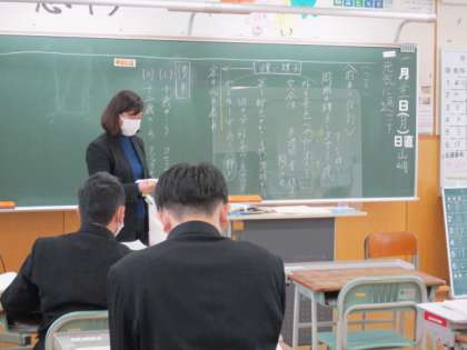 1年4限 国語 公開日 2022/01/31 更新日 2022/01/31 日々の活動から 1月31日(月) 1年生の国語の授業の様子です。 「少年の日の思い出」を読んで、文章の前半部分の役割について考える授業でした。