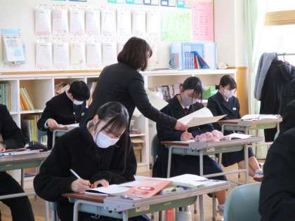 3年2限 国語 公開日 2022/02/01 更新日 2022/02/01 日々の活動から 2月1日(火) 3年生の国語の授業の様子です。 課題作文の練習を行いました。 国語の入試には必ず最後に課題作文があり、その練習をした後、書き方のポイント等の解説をしてよりよい作文となるように学習しました。