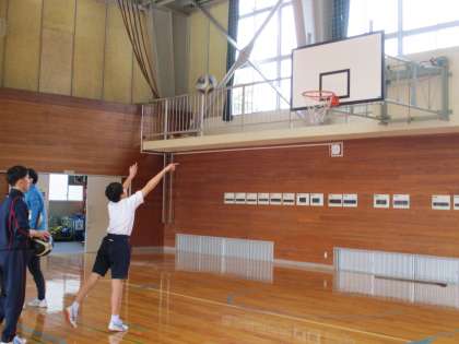 2月1日(火) 1年生の保健体育の授業の様子です。 バスケットボールのスキルテストをしました。