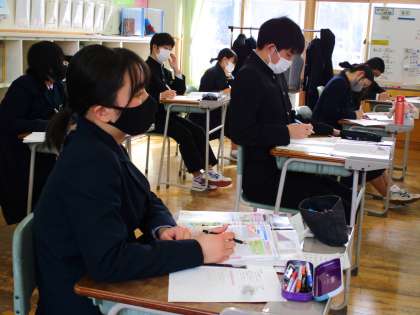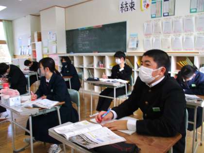 2月1日(火) 3年生の社会の授業の様子です。 みんな高い集中力で教科担当者の説明を聞いています。