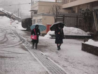 登校風景 公開日 2022/02/02 更新日 2022/02/02 日々の活動から 2月2日(水) 今朝は、久しぶりの雪でした。 足下は水分を多く含んだ雪でベタベタでした。 明日、3年生は私立高校一般入試の日です。 前日の今日、みんな元気に登校してきました。 今日よい準備をして、明日全ての力を発揮できるようにしましょう!