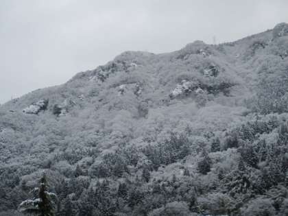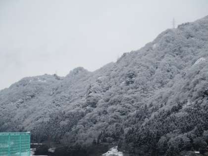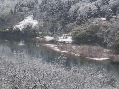 昨日、快晴の神通峡の様子をお伝えしましたが、今日は一転、雪化粧した神通峡です。