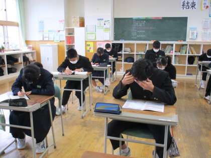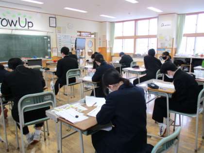 2月2日(水) 3年生の英語の授業の様子です。 入試予想問題に取り組んでいました。