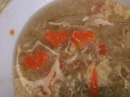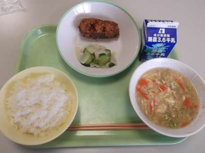 今日の給食 公開日 2022/02/02 更新日 2022/02/02 日々の活動から 2月2日(水) 今日のメニューは、次のとおりです。 ○ごはん ○魚の利休揚げ ◯レモンあえ ○中華かきたま汁 ○牛乳 今日は「レモンあえ」の中には大きなハート型の〈かぶ〉と〈きゅうり〉、「中華かきたま汁」には小さなハート型の〈にんじん〉がたくさん入っていました。