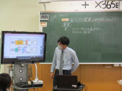 2月2日(水) 1年生の社会の授業の様子です。 「南アメリカの産業の特徴を知ろう」という内容の授業でした。