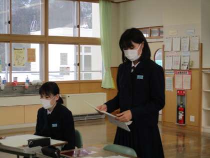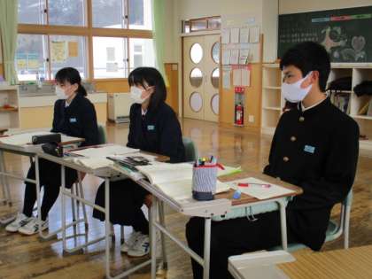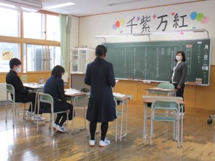 2月2日(水) 2年生の国語の授業の様子です。 話を聞くときは、しっかり手は机の下に置いて話を聞いています。