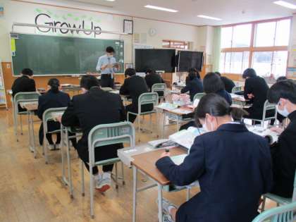 3年4限 社会 公開日 2022/02/04 更新日 2022/02/04 日々の活動から 2月4日(金) 3年生の社会の授業の様子です。 「持続可能な社会を目指していくために」という内容の授業でした。 ユネスコスクールである本校にとってとても大切な内容です。 本校は今年度、県内唯一の中学校のユネスコスクールです。