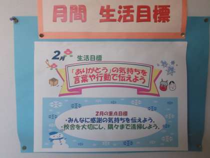 2月生活目標 「ありがとう」の気持ちを言葉や行動で伝えよう
