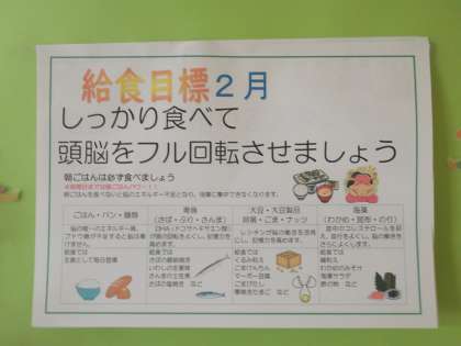 2月給食目標 しっかりたべて頭脳をフル回転させましょう