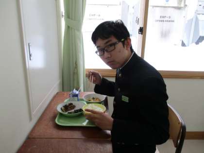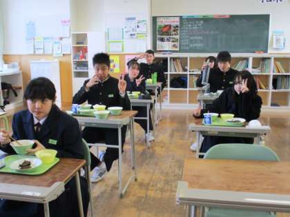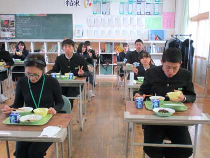 2月7日(月) 3年生の給食風景です。 放送当番の生徒もいました。