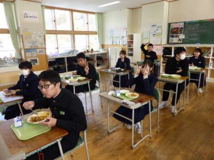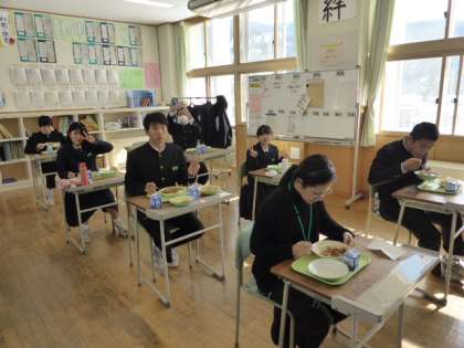 2月8日(火) 3年生の給食風景です。 放送当番の生徒もいました。