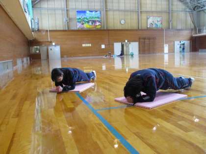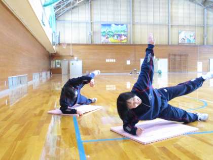 ソフトボール部 公開日 2022/02/08 更新日 2022/02/08 日々の活動から 2月8日(火) 本日のソフトボール部の活動の様子です。 前半はランニングや体幹トレーニング等の体力づくりを行い、後半はピッチング練習を行いました。 体幹トレーニングは、難しい体勢をキープするのに苦戦していました。
