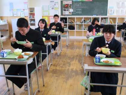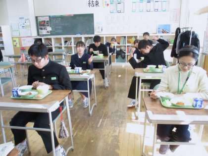 2月9日(水) 3年生の給食風景です。 放送当番の生徒もいました。