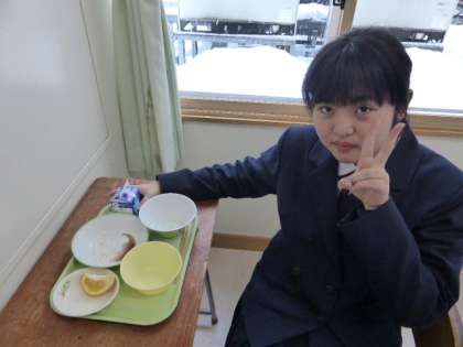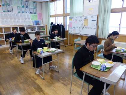 2月10日(木) 3年生の給食風景です。 放送当番の生徒もいました。
