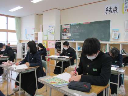 2月10日(木) 3年生の国語の授業の様子です。 黙々と問題集に取り組んでいました。