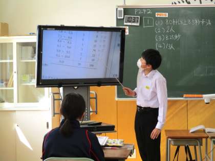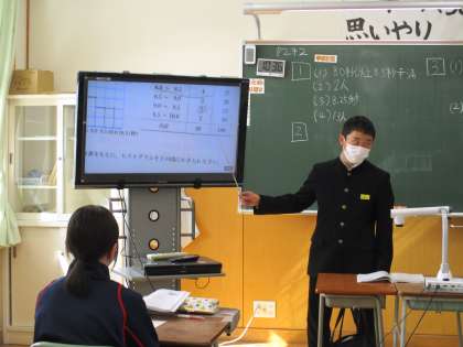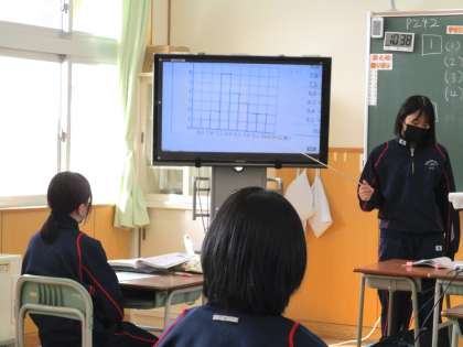 1年3限 数学 公開日 2022/02/14 更新日 2022/02/14 日々の活動から 2月14日(月) 1年生の数学の授業の様子です。 「階級値は○○です。それはここから判断しました。」と各自の問題を説明できるようになってきました。