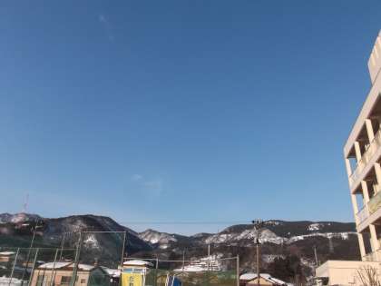 今日の空 公開日 2022/02/15 更新日 2022/02/15 日々の活動から 2月15日(火) 今朝は、西の空は雲一つない青空が広がっていました。 南の空は、稜線から雲が顔を出していましたが、青空が広がっています。 東の空からは、久しぶりに山並みから朝陽が顔を出したのを見ることができました。