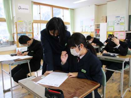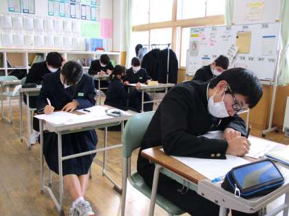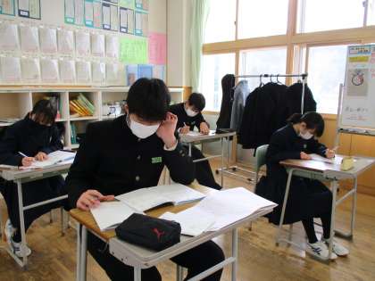 2月15日(火) 3年生の数学の授業の様子です。 入試予想問題に取り組んでいます。