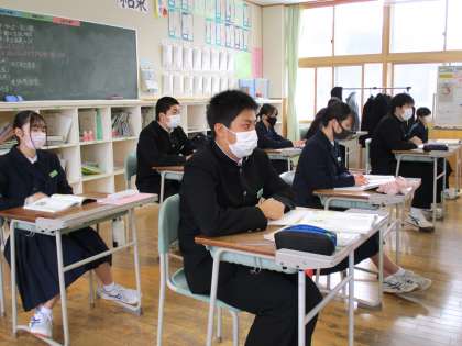 2月15日(火) 3年生の国語の授業の様子です。 「3年間の歩みを振り返ろう」という内容の授業でした。