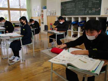 2月15日(火) 1年生の英語の授業の様子です。 「英文の概要をつかもう」という内容の授業でした。