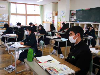 3年5限 理科 公開日 2022/02/16 更新日 2022/02/16 日々の活動から 2月16日(水) 3年生の理科の授業の様子です。 「地球温暖化防止」に関する授業でした。 SDGsとも絡む大切な内容でした。