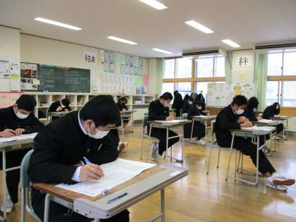 2月17日(木) 3年生の国語の学年末考査の様子です。 入試のような問題が出題されていました。