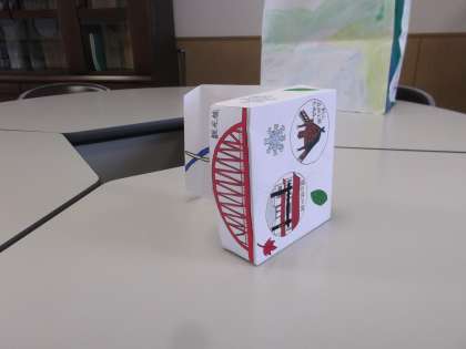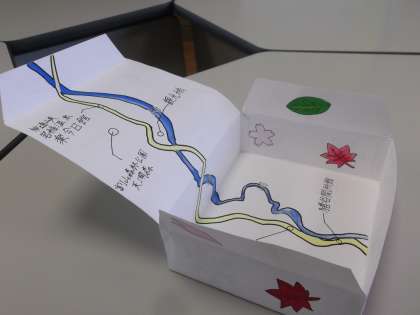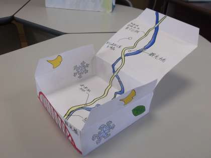 箱の外側には細入地域の名所をデザインし、箱を開けると中には地図が記されておりグッドアイディア!