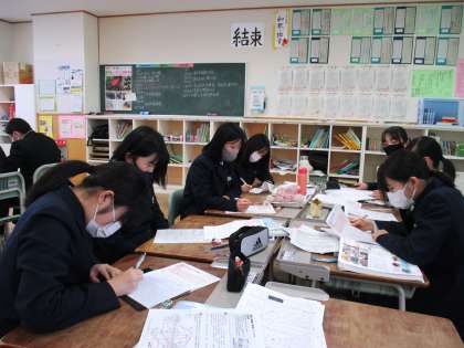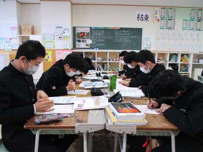 2月17日(木) 3年生の理科の授業の様子です。 テストの予想問題を解いていました。