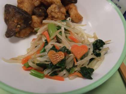 今日は「小松菜のナムル」の中に小さなかわいい《ハート型》の〈にんじん〉が入っていました。