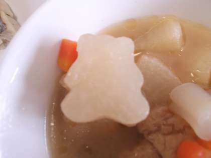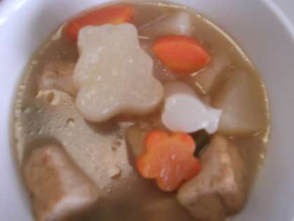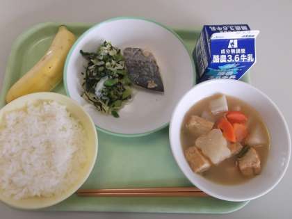 今日の給食 公開日 2022/02/18 更新日 2022/02/18 日々の活動から 2月18日(金) 今日のメニューは、次のとおりです。 ○ごはん ◯鰆の塩焼き ○磯あえ ○大根と厚揚げの中華煮 ○バナナ ○牛乳 今日は「大根と厚揚げの中華煮」の中に《梅の花》の形をした〈にんじん〉が入っていました。 また、《小魚》型の〈こんにゃく〉や 座った《くま?》の形の〈大根〉も入っていました。