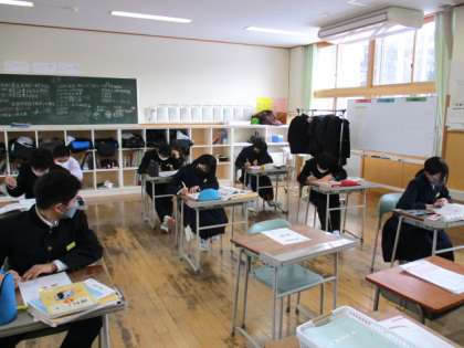2月18日(金) 1年生の理科の授業の様子です。 学年末考査に向けてまとめをしていました。