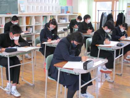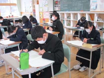 3年6限 国語 公開日 2022/02/18 更新日 2022/02/18 日々の活動から 2月18日(金) 3年生の国語の授業の様子です。 入試予想問題に取り組みました。 また「3年間の歩みを振り返ろう」という取組も行いました。