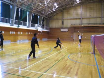 ローテーションでコートを入れ替わり、クラスメイト全員と練習をしました。