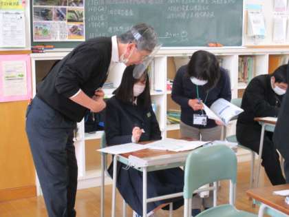 教え合い学習をしながら、それぞれの間違ったところ、分からなかったところを確認しています。