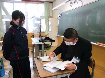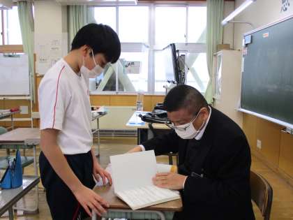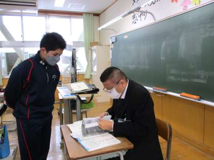 2月21日(月) 1年生の数学の授業の様子です。 課題を提出する生徒がいました。