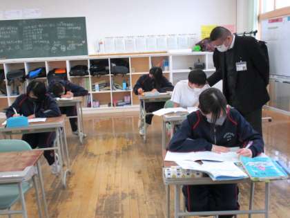 明日の学年末考査に向けて復習をしました。 時々質問がありました。