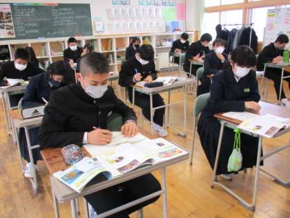 3年4限 社会 公開日 2022/02/21 更新日 2022/02/21 日々の活動から 2月21日(月) 3年生の社会の授業の様子です。 公民でSDGsについて学習しました。 これからの時代SDGsを意識した生活をしていかなければなりません。