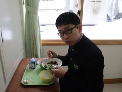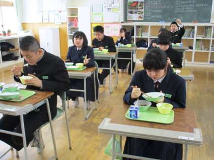 2月21日(月) 3年生の給食風景です。 放送当番の生徒もいました。