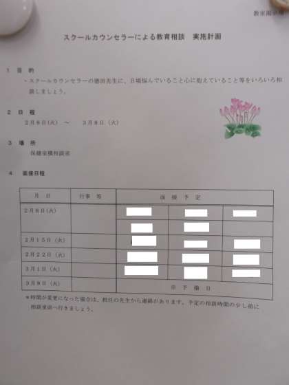 本校では、毎学期1回スクールカウンセラーとの面談を実施しています。