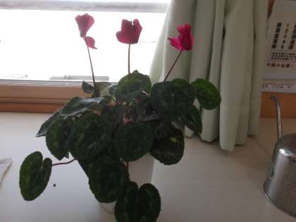 2年生の教室にもシクラメンがありますが、1年生のシクラメンより大きいのですが、その分広がって咲いています。
