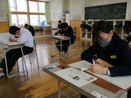 1年3限 社会 学年末考査 公開日 2022/02/24 更新日 2022/02/24 日々の活動から 2月24日(木) 1年生の社会の学年末考査の様子です。 授業中に学習したことを思い出そうと、必死に記憶を巡らせていました。